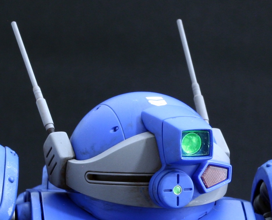 カメラアイのレンズはクリアーグリーン、四角いクリアパーツは裏側から薄くクリアーグリーンを吹付。